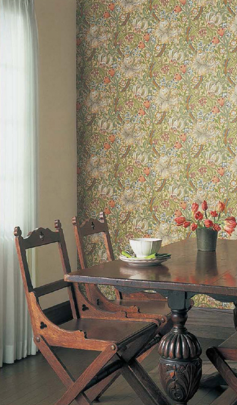 モリスが終の棲家にしたハマースミスのケルムスコットハウスのダイニングルームに使われていたので、モリス自身がが好んだデザインの1つだと考えられます。
